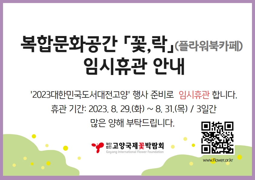 안내] 임시휴관 복합문화공간「꽃,락」(8. 29.(화)~8. 31.(목)