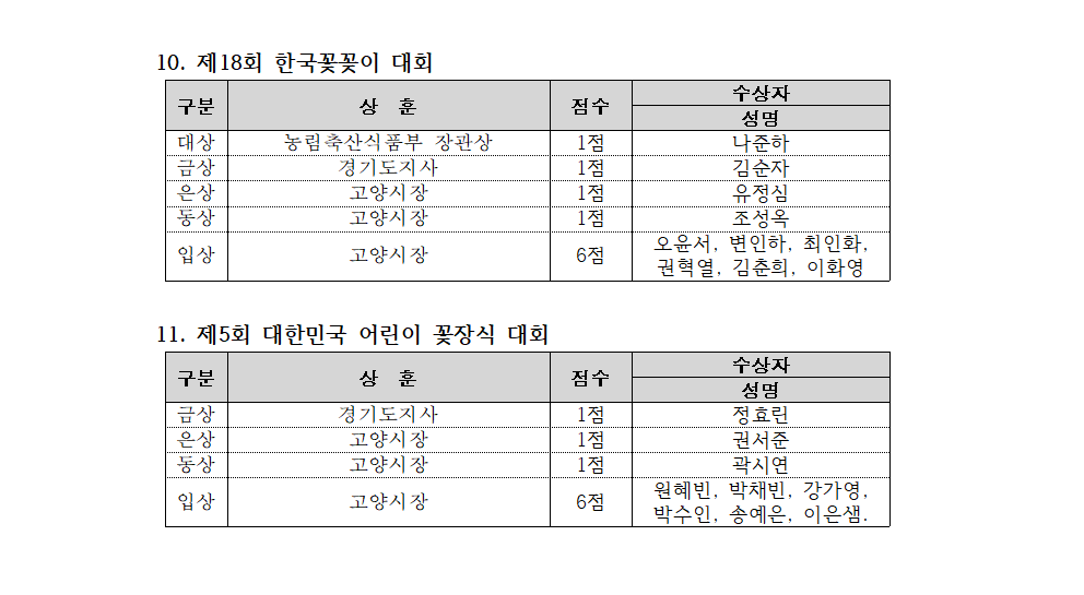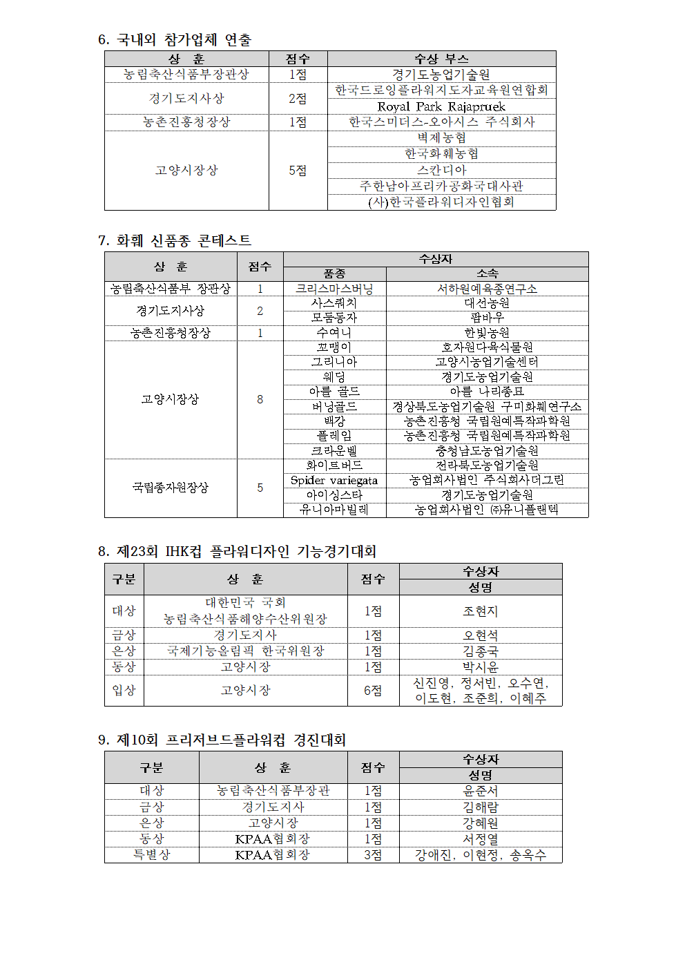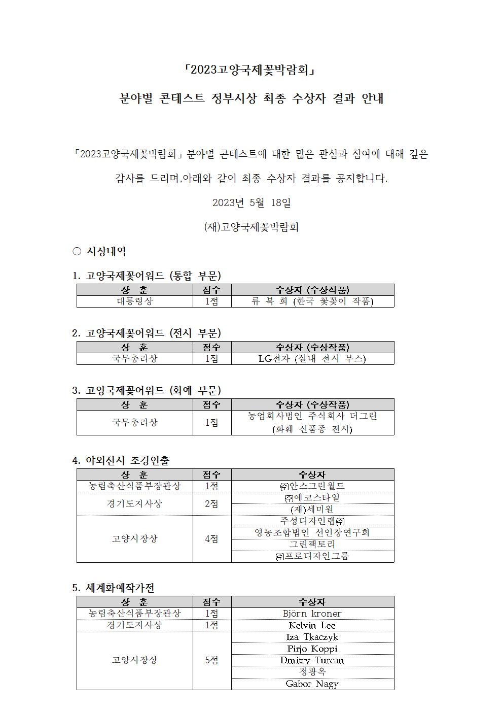 [공지] 2023고양국제꽃박람회 분야별 콘테스트 정부시상 최종 수상자 결과 안내