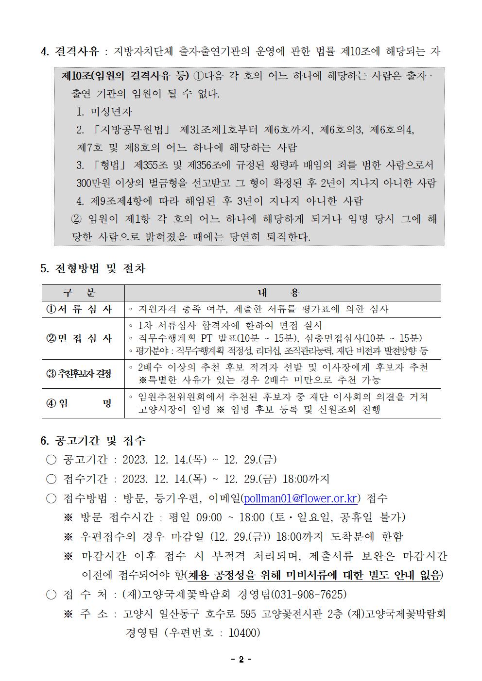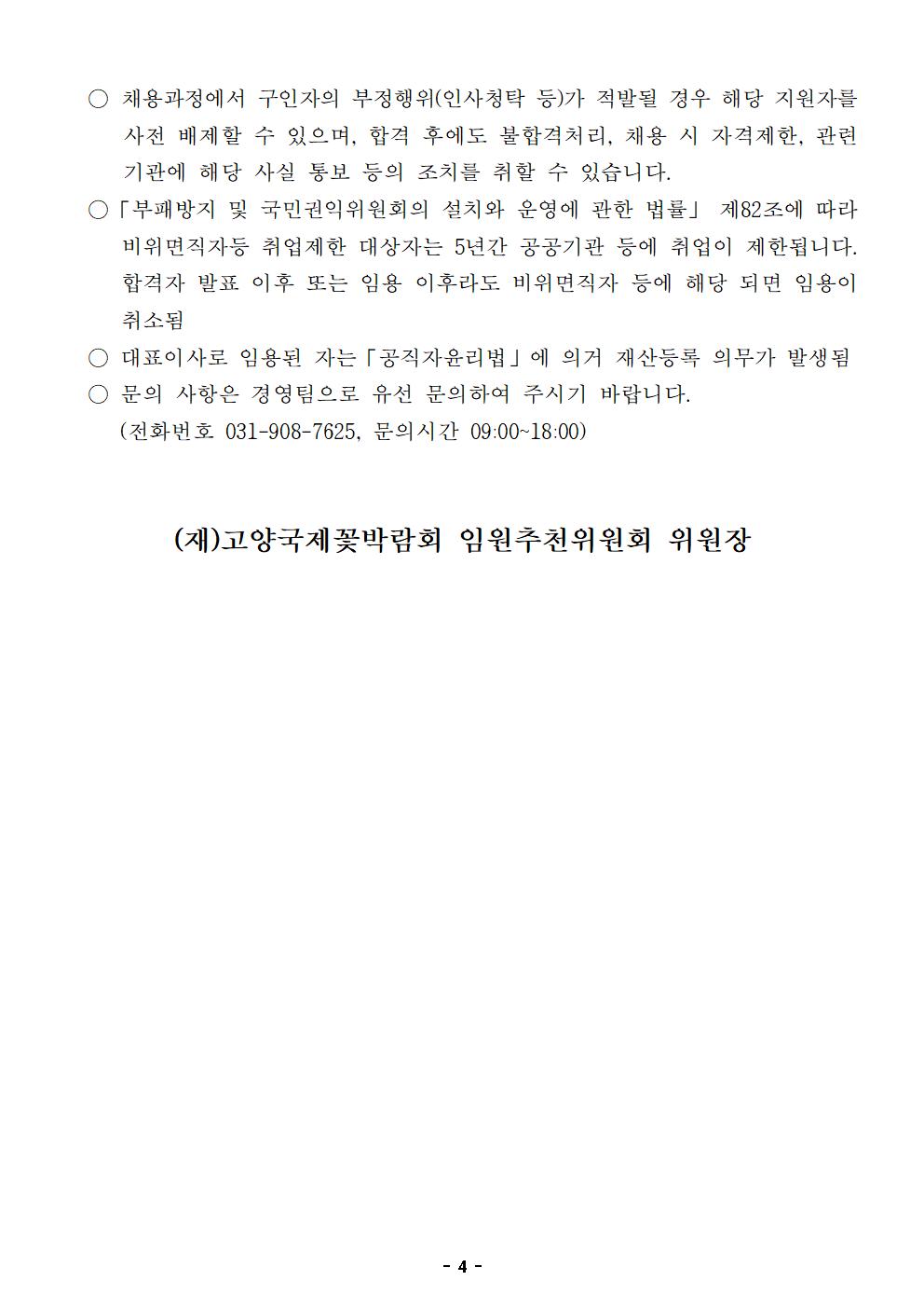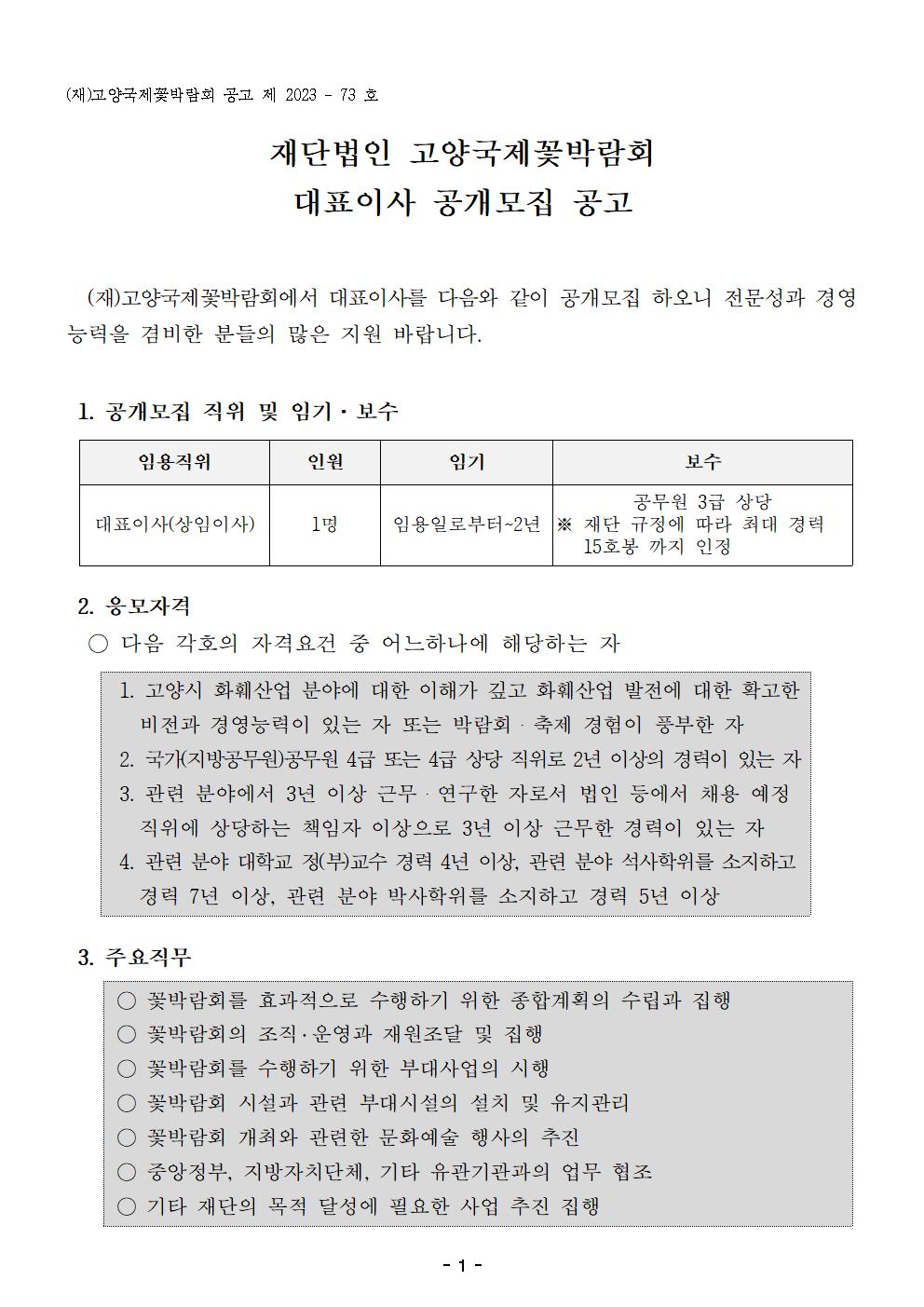 (재)고양국제꽃박람회 대표이사 공개모집 공고