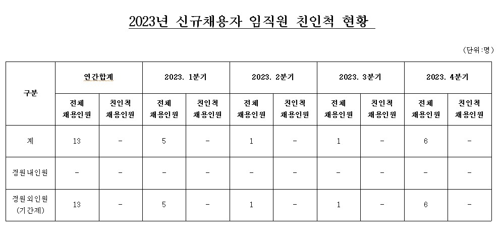 2023년도 신규채용 친인척 현황 공개 공고
