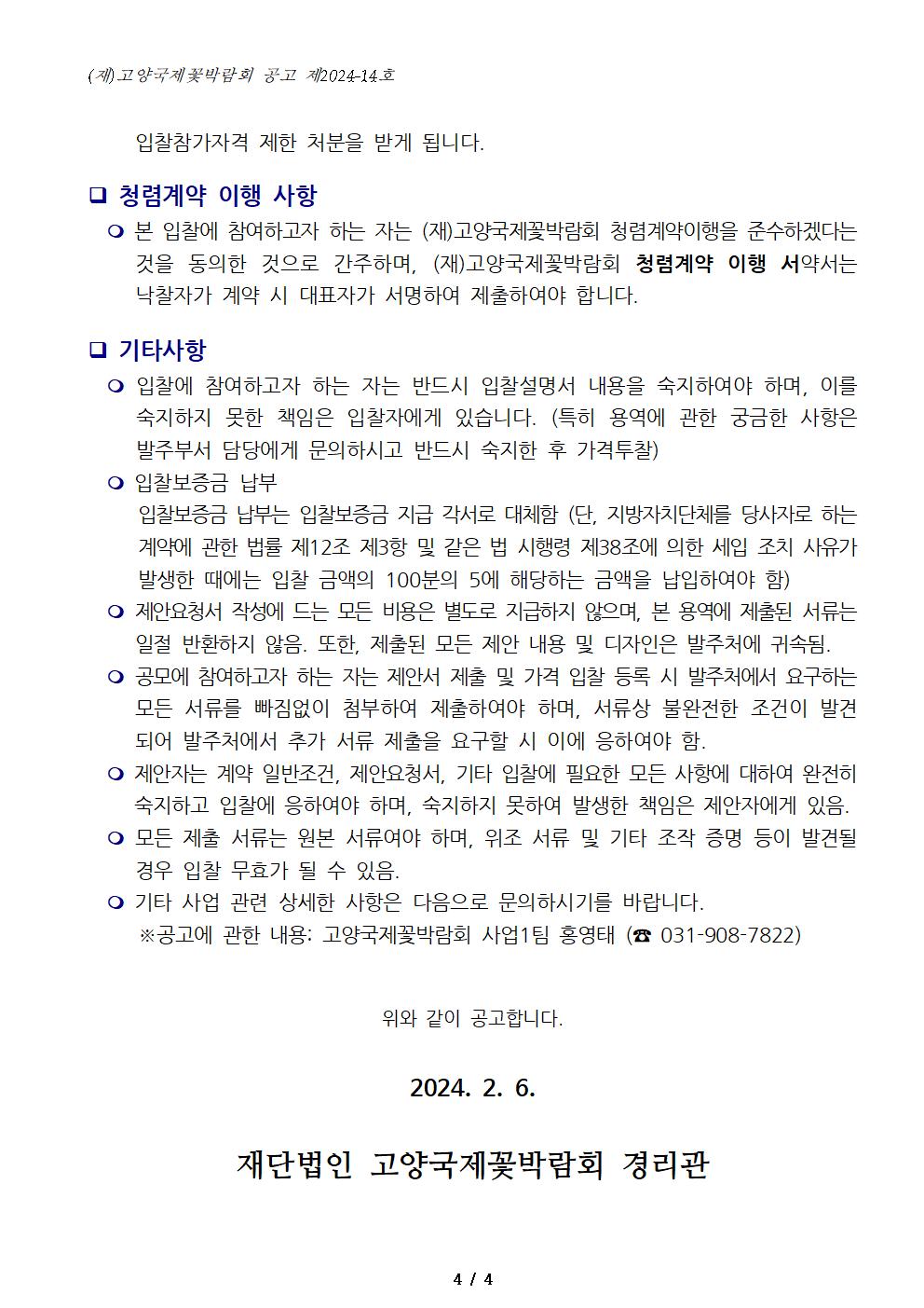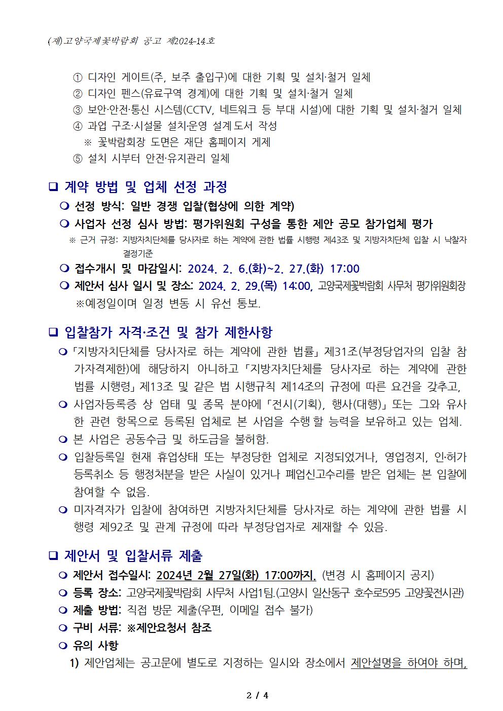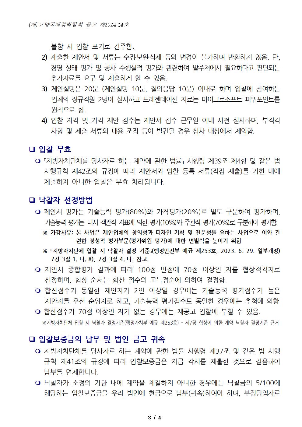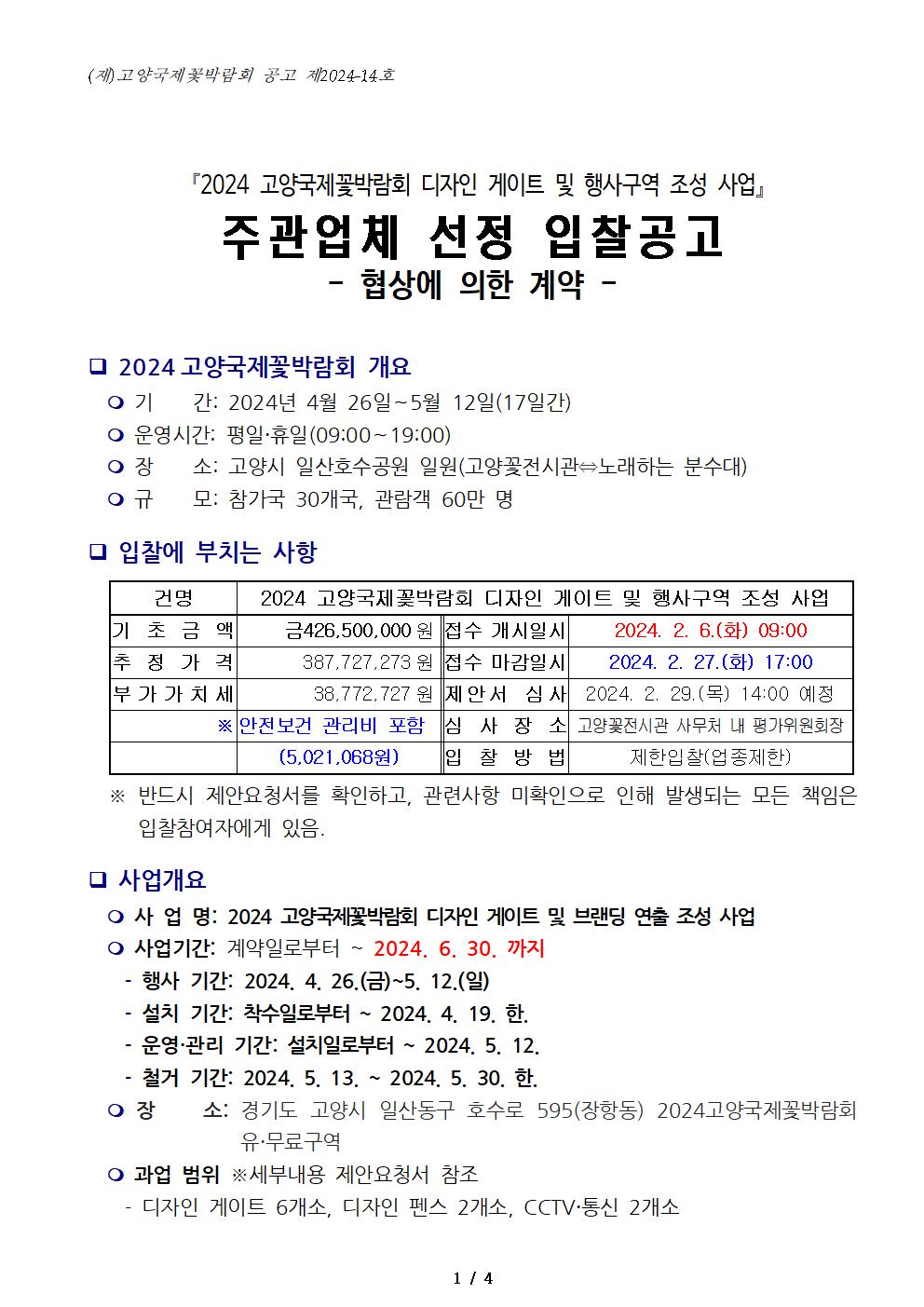 '2024 고양국제꽃박람회 디자인 게이트 및 행사구역 조성 사업' 주관업체 선정 입찰 공고(협상에 의한 계약)