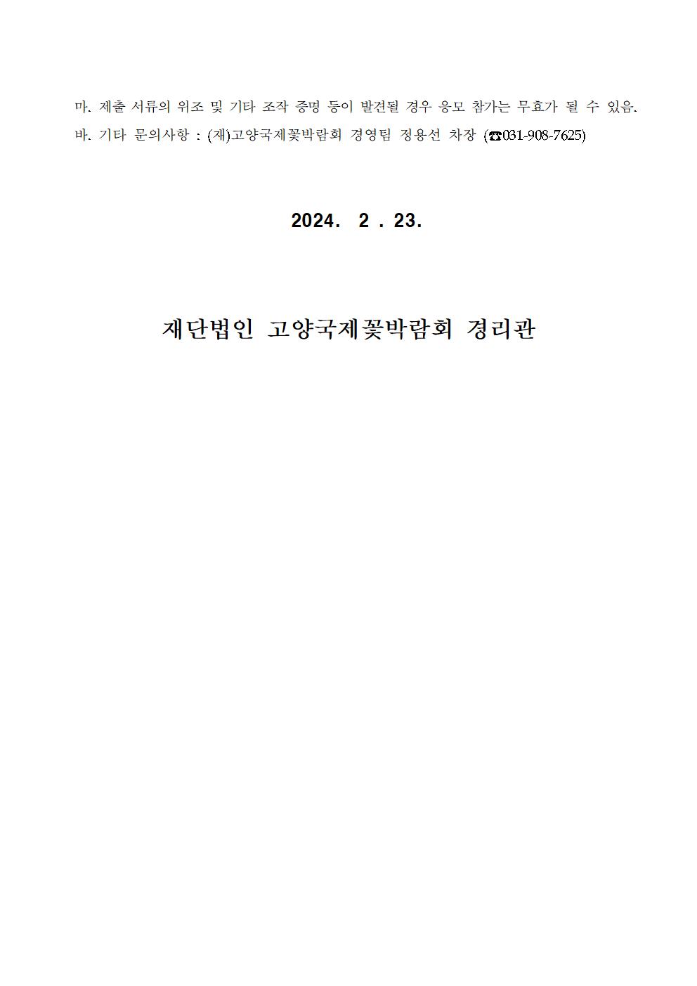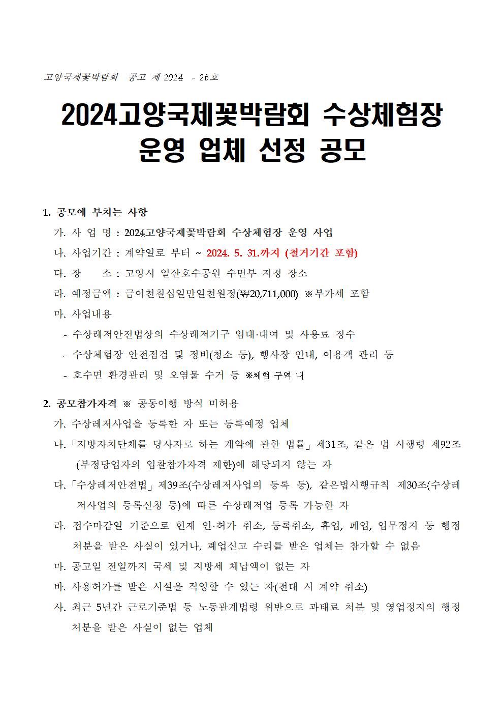 2024고양국제꽃박람회 수상체험장 운영 업체 선정 공모