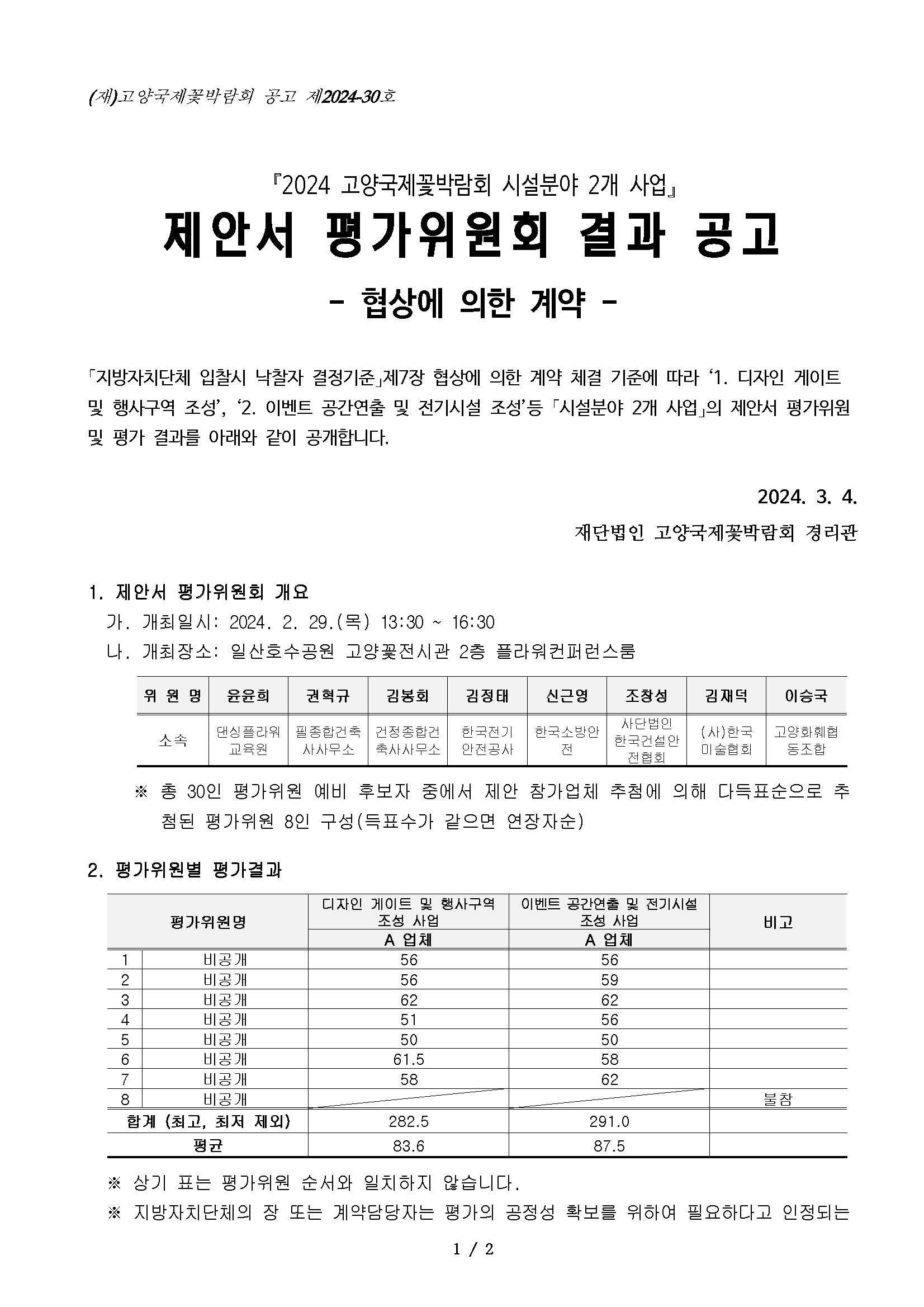 2024고양국제꽃박람회 시설분야 2개 사업 평가위원회 개최 결과 공고