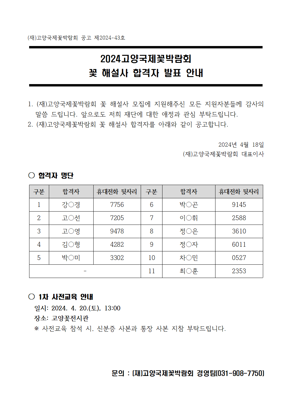 2024고양국제꽃박람회 꽃 해설사 합격자 발표 안내