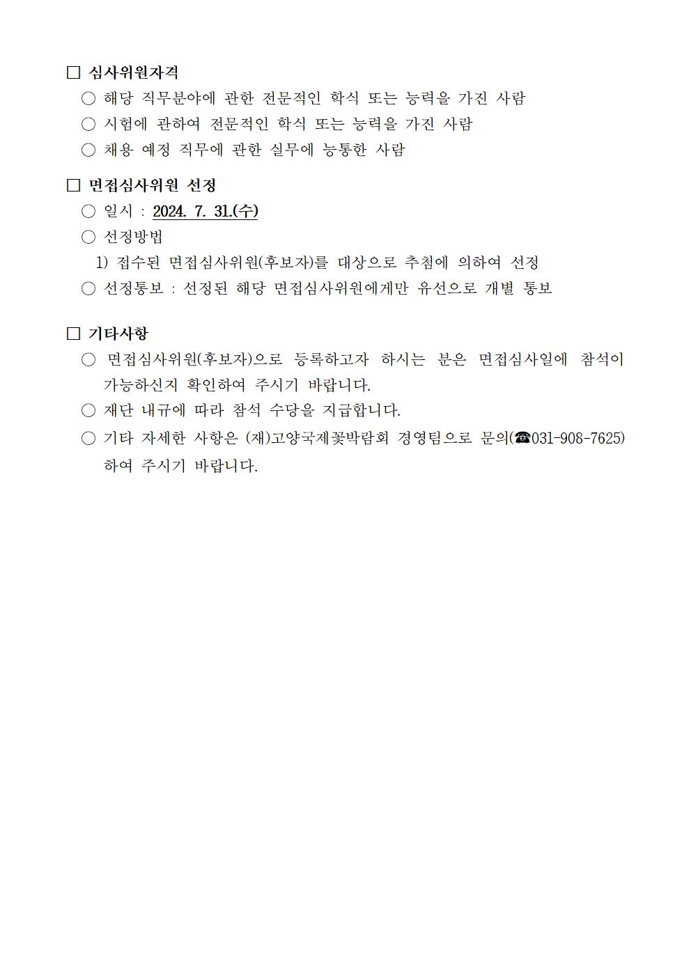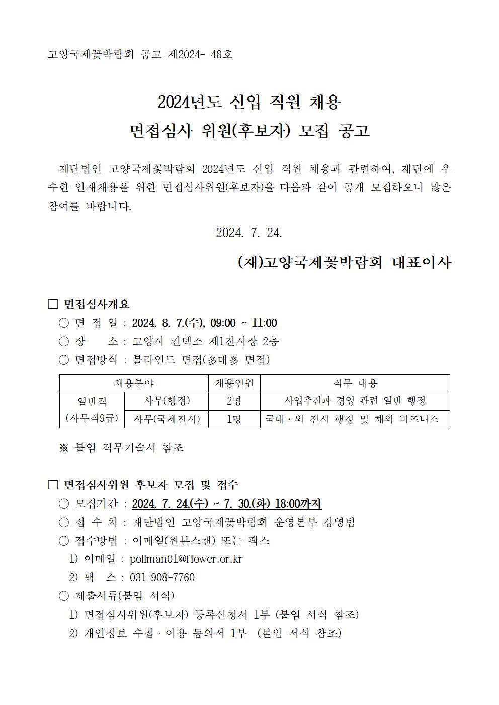 2024년도 신입 직원 채용 면접심사 위원(후보자) 모집 공고