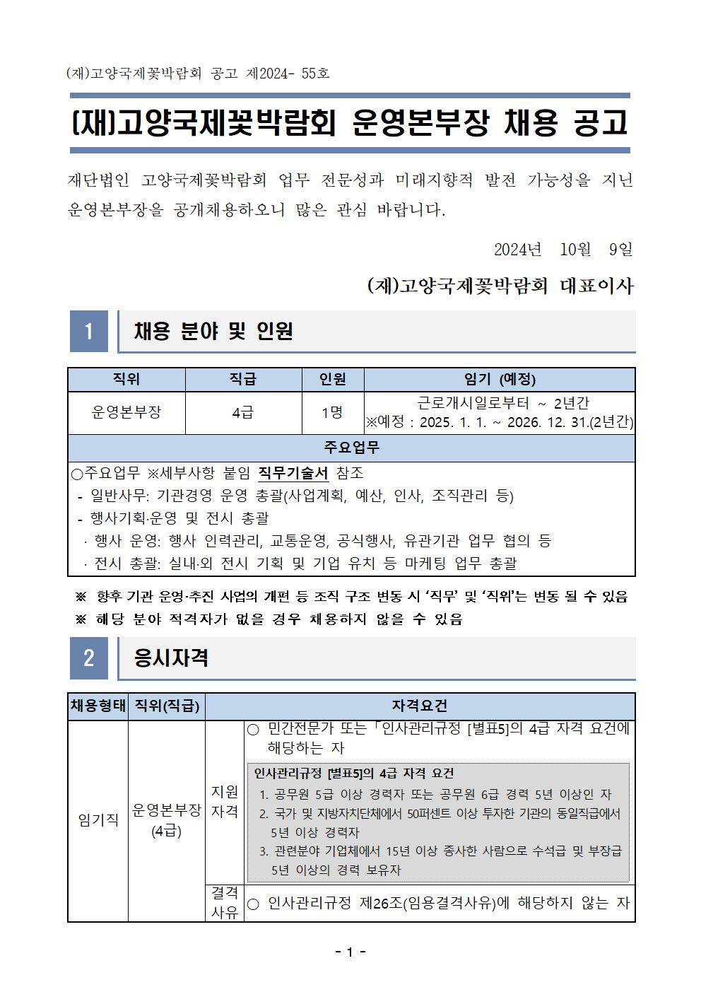 (재)고양국제꽃박람회 운영본부장 채용 공고