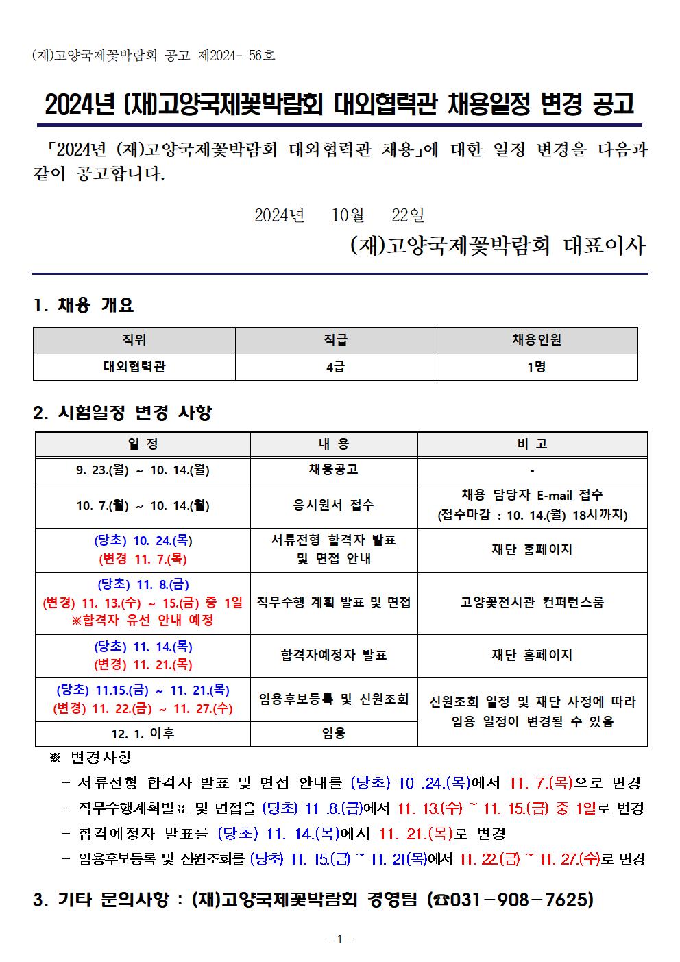 2024년 (재)고양국제꽃박람회 대외협력관 채용일정 변경 공고