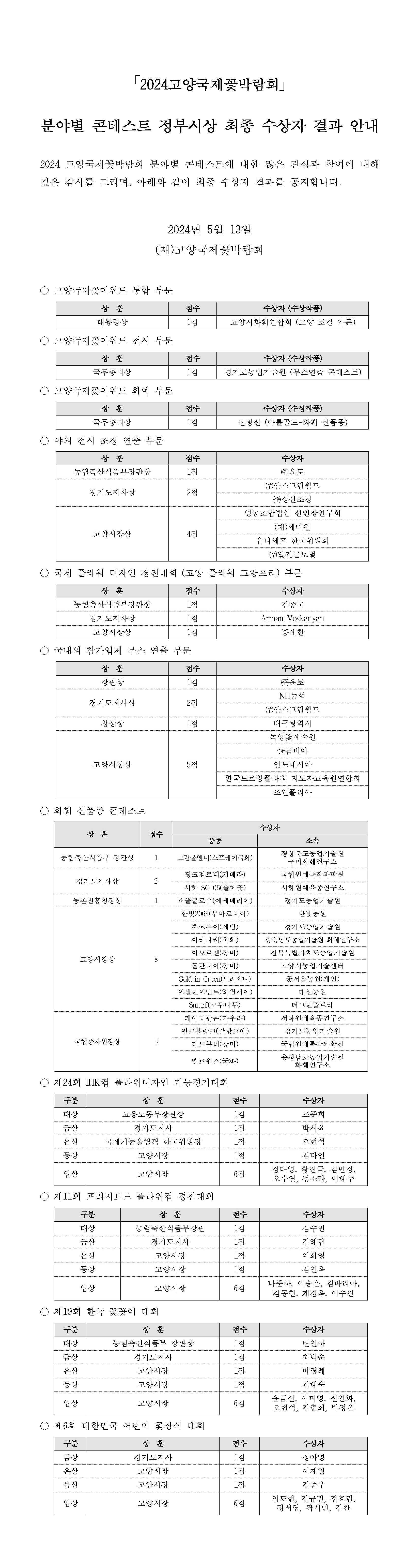 2024 고양국제꽃박람회 분야별 콘테스트 정부시상 최종 수상자 결과 안내