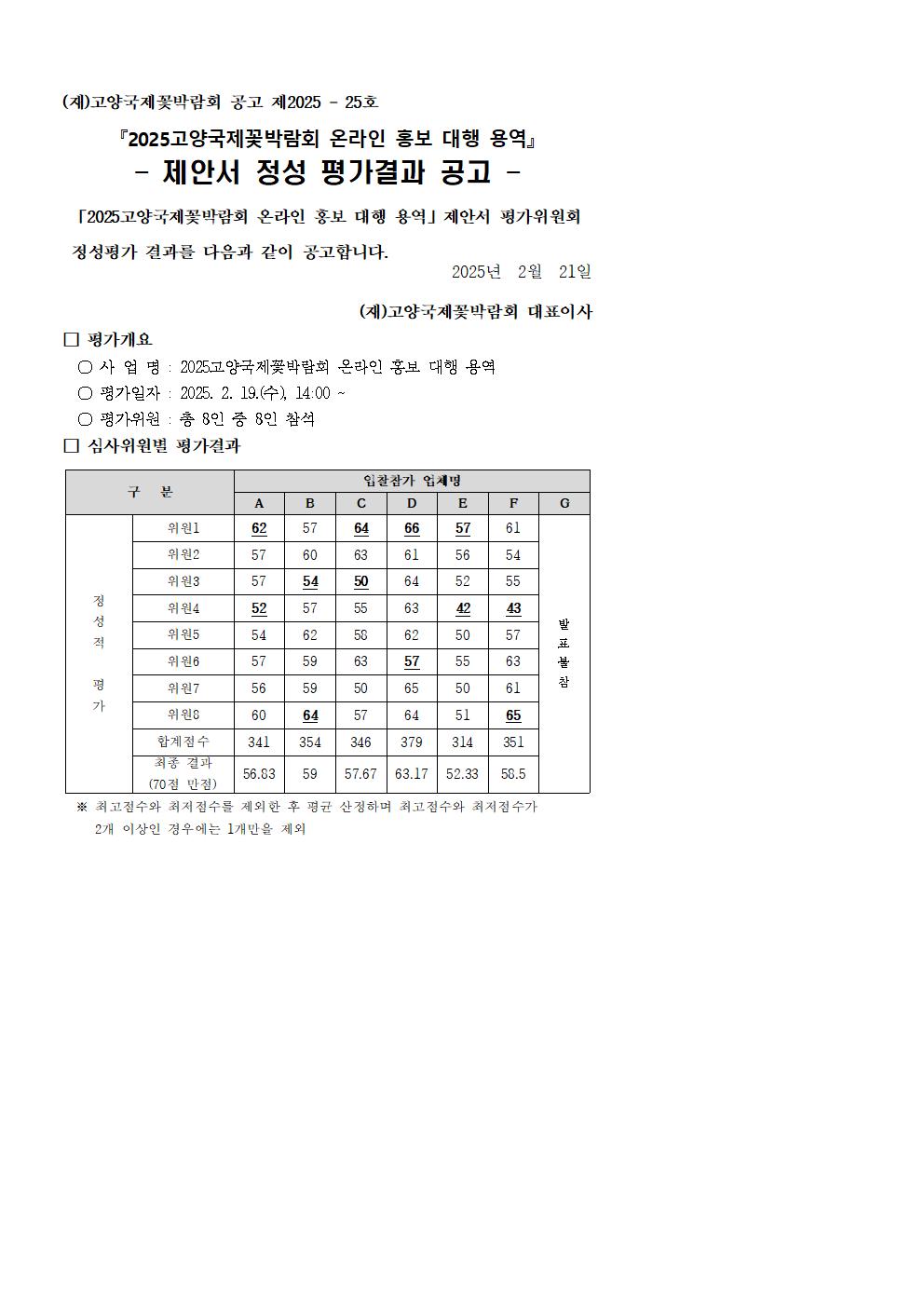 2025고양국제꽃박람회 온라인 홍보 대행 용역 제안서 정성 평가 결과 공고