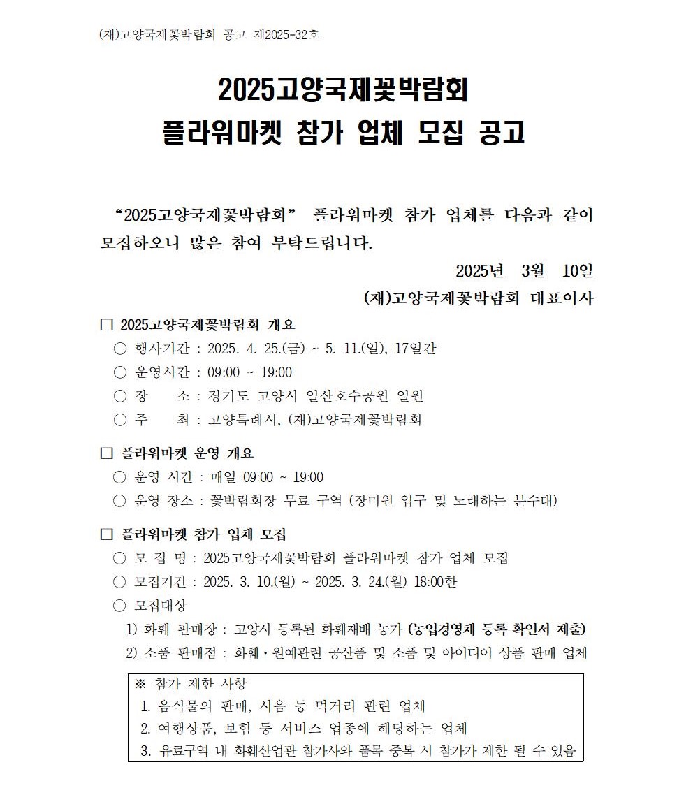 [공고] 2025고양국제꽃박람회 플라워마켓 참가 업체 모집 공고