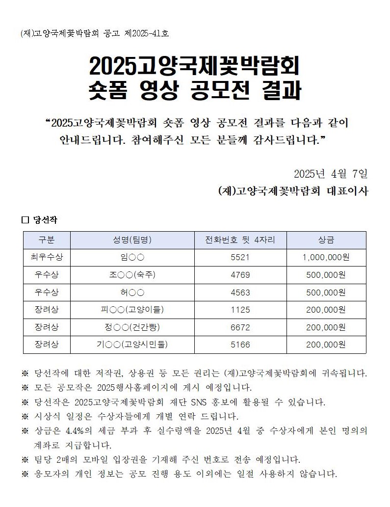 2025고양국제꽃박람회 숏폼 영상 공모전 결과