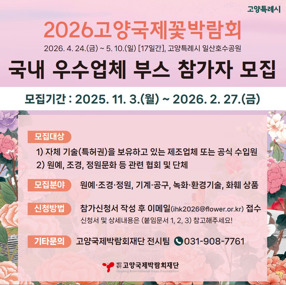 [공고]2026고양국제꽃박람 국내 우수업체(실내) 부스 참가자 모집 공고