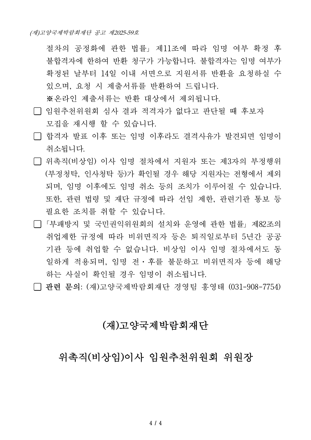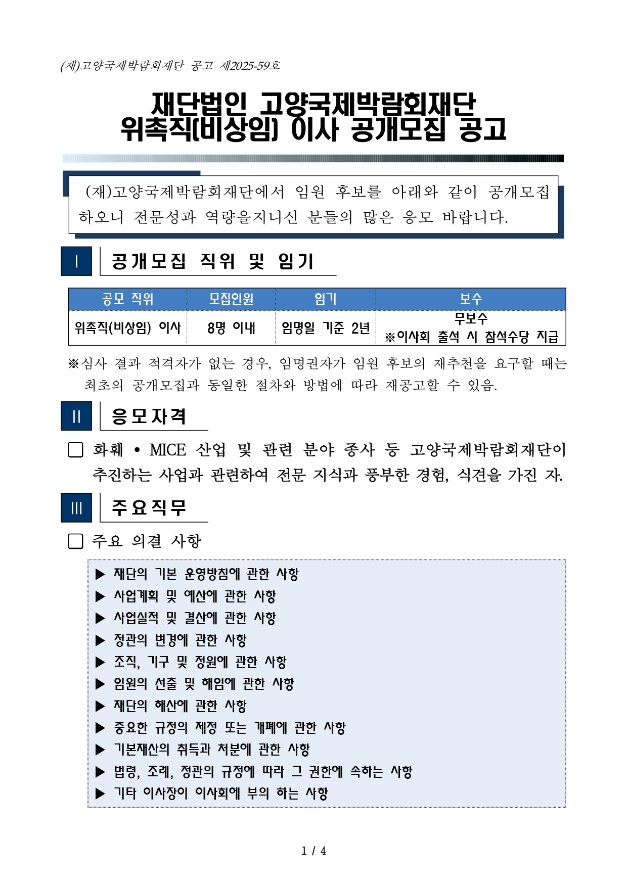 (재)고양국제박람회재단 신임 위촉직(비상임) 이사 공개모집 공고