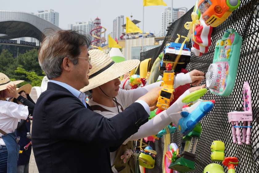 사전 신청을 받아 진행된태양의 꽃설치 예술 체험은 공공예술에 관심 있는 고양특례시 유ㆍ초등학생 단체 관람객의 참여로 세계적인 아티스트 최정화작가와 함께 직접 재활용 플라스틱 장난감을 골라 펜스에 묶고 휀스에 매달며 꽃벽을 함께 만들어가는 과정으로 진행되었다. 참여한 관람객은 플라스틱 재활용 장난감을 새로운 관점으로 관찰하고 경험을 함께 나눈 후, 꽃 모종을 받았다.