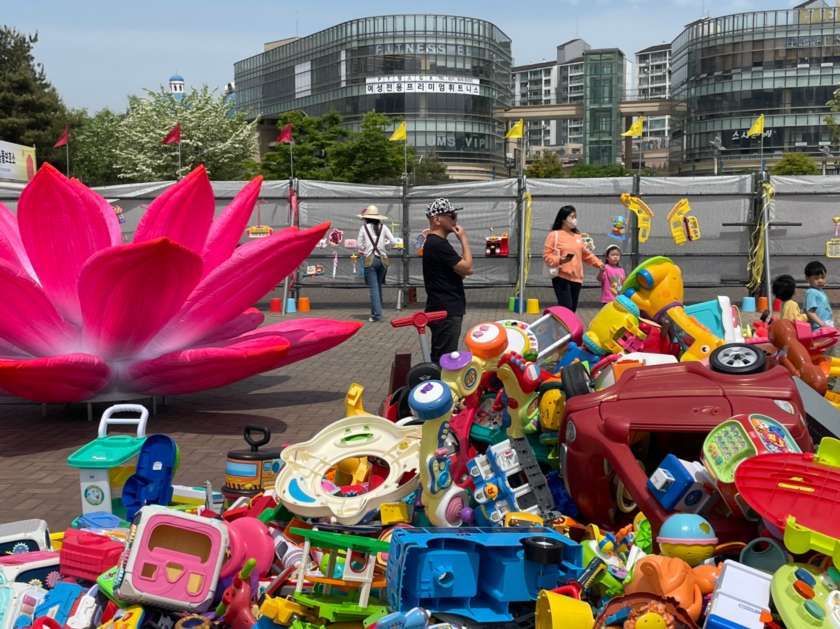 최정화 작가는 직접 현장에서 관람객과 소통하며 버려지는 것들도 꽃이 될 수 있으며, 너와 나, 우리 모두는 꽃이라는 진정성 있는 메시지를 전달하고 있다.